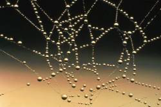 http://en.wikipedia.org/wiki/Image:Water_drops_on_spider_web.jpg. Public Domain.