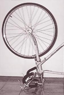 Figure h: An improperly balanced wheel has a center of mass that is not at its geometric center. When you get a new tire, the mechanic clamps little weights to the rim to balance the wheel.