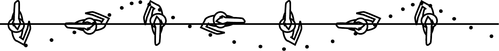 Figure g: The same leaping dancer, viewed from above. Her center of mass traces a straight line, but a point away from her center of mass, such as her elbow, traces the much more complicated path shown by the dots.