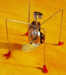 Figure i: This toy was intentionally designed so that the mushroom-shaped piece of metal on top would throw off the center of mass. When you wind it up, the mushroom spins, but the center of mass doesn't want to move, so the rest of the toy tends to counter the mushroom's motion, causing the whole thing to jump around.