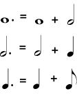 Figure 2: When a note has more than one dot, each dot is worth half of the dot before it.