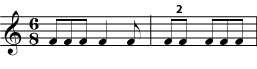 Figure 5: In a compound meter, which normally divides a beat into three, the borrowed division may divide the beat into two, as in a simple meter. You may also see duplets in swing music.