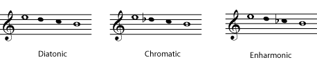 The perfect fourth is an interval that occurs naturally, for example in string and wind instrument harmonics, so we can be pretty certain that we understand that part of ancient Greek music theory. It is more difficult to be certain of the exact tuning of each note within a tetrachord. Enharmonic tetrachords are particularly confusing; it is clear that two of the notes were very close in pitch. As shown in Figure 2, they are often notated so that, using modern tuning, the two notes would sound the same. This sameness is a result of equal-tempered tuning, however; other tuning systems have been used which cause enharmonic notes to be tuned slightly differently. It is not clear whether these ancient tetrachords actually had only three distinct pitches (it would not be the only time that something existed only to make a theory seem more consistent), or whether the two "enharmonic" notes were actually slightly different. References to "shading" in some of the ancient texts may have referred to differences in tuning.