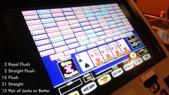 When she presses the “DRAW” button, each of the hundred hands will begin with the four cards she held and she will get a new fifth card on each of the hundred hands that is drawn from a different deck of cards.